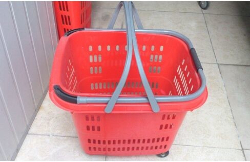 Commercial Supermarket Trolley Basket / Plastic Rolling Shopping Basket With Wheels